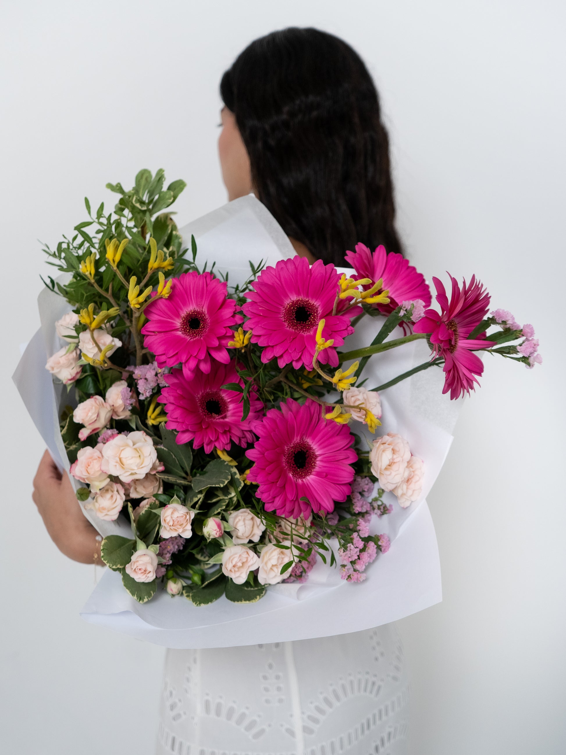 Your bouquet will arrive neatly wrapped and placed in our Blushed bag. It will come with a sachet of complimentary flower food and a standard Blushed notecard.